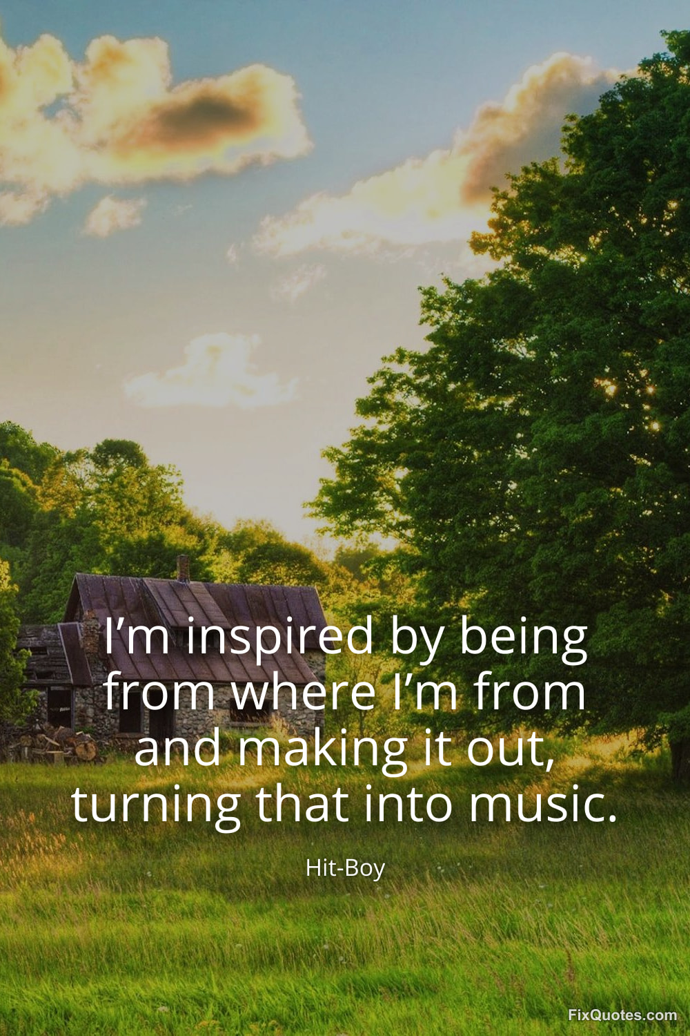 Hit-Boy. "I’m inspired by being from where I’m from and making it out, turning that into music." FixQuotes. January 30, 2026. https://fixquotes.com/quotes/im-inspired-by-being-from-where-im-from-and-184639/.