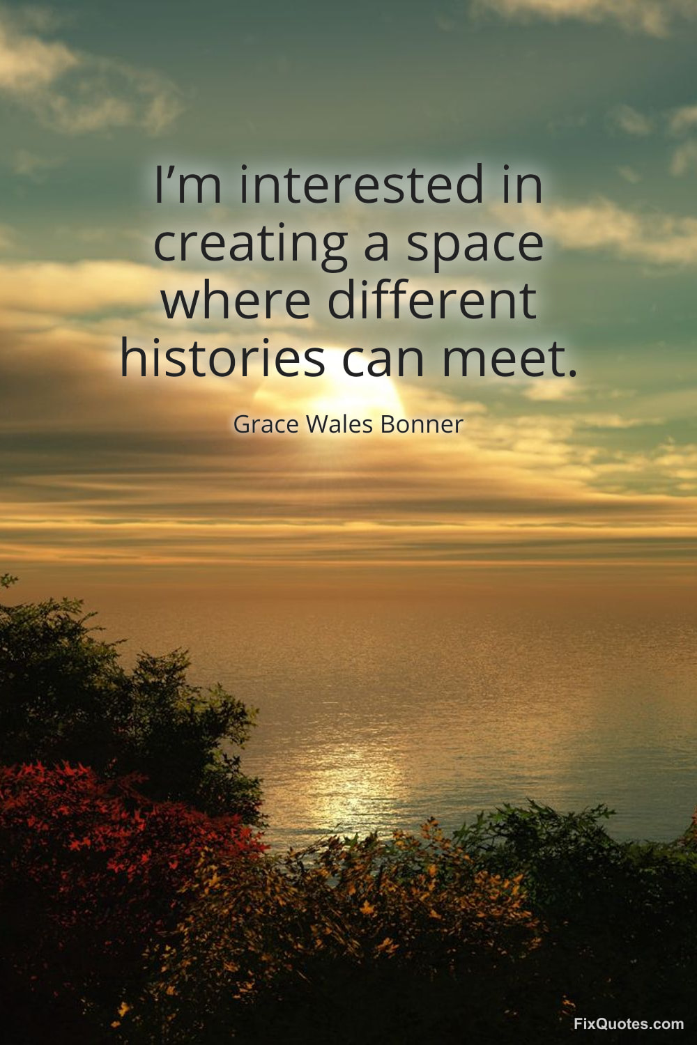 Bonner, Grace Wales. (2026, January 25). I’m interested in creating a space where different histories can meet. FixQuotes. https://fixquotes.com/quotes/im-interested-in-creating-a-space-where-different-184223/