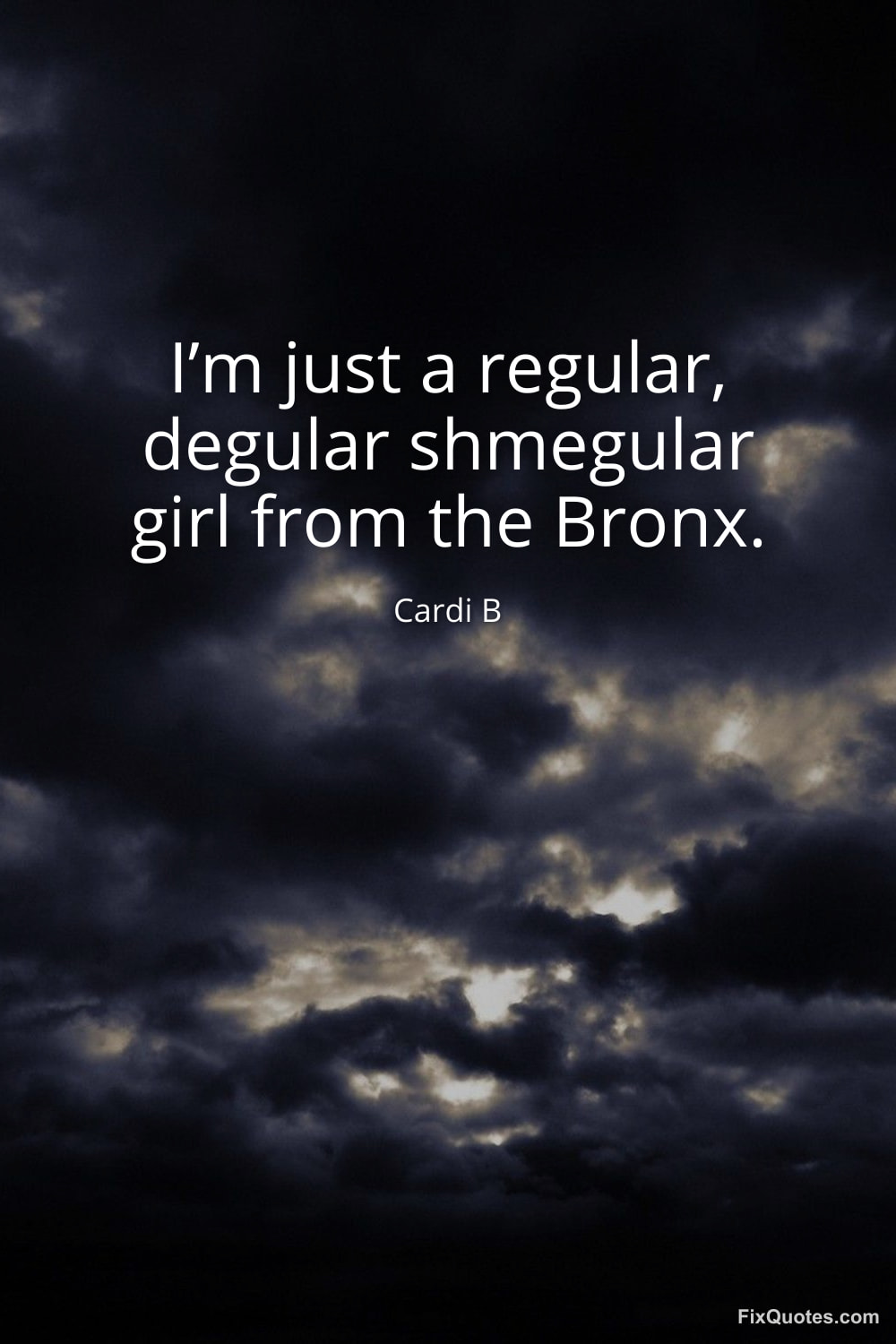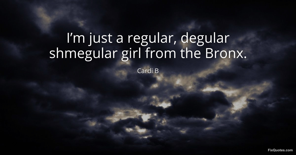 B, Cardi. "I’m just a regular, degular shmegular girl from the Bronx." FixQuotes. February 8, 2026. https://fixquotes.com/quotes/im-just-a-regular-degular-shmegular-girl-from-the-184958/.