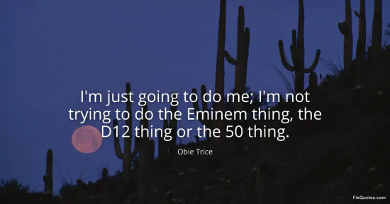 Trice, Obie. "I'm just going to do me; I'm not trying to do the Eminem thing, the D12 thing or the 50 thing." FixQuotes. January 16, 2026. https://fixquotes.com/quotes/im-just-going-to-do-me-im-not-trying-to-do-the-100707/.