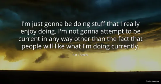 Travers, Pat. "I'm just gonna be doing stuff that I really enjoy doing. I'm not gonna attempt to be current in any way other than the fact that people will like what I'm doing currently." FixQuotes. January 16, 2026. https://fixquotes.com/quotes/im-just-gonna-be-doing-stuff-that-i-really-enjoy-132630/.