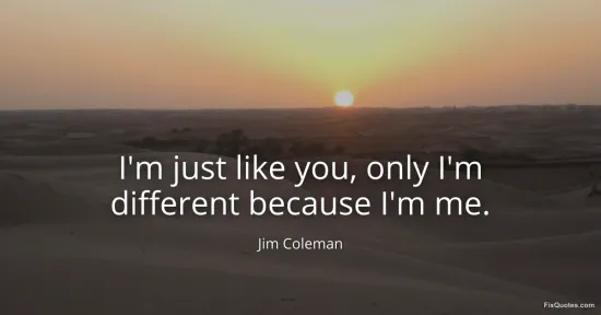 Coleman, Jim. (2026, January 16). I'm just like you, only I'm different because I'm me. FixQuotes. https://fixquotes.com/quotes/im-just-like-you-only-im-different-because-im-me-90624/