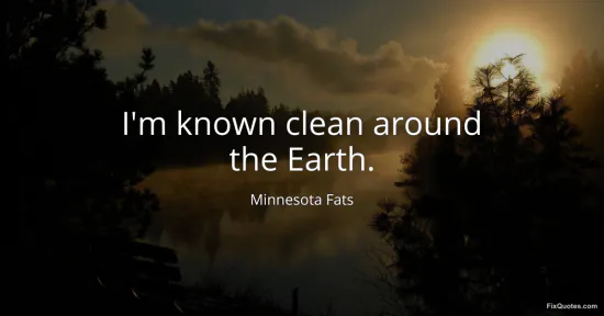 A brag that lands like a tall tale told with a straight face: "I'm known clean around the Earth" is Minnesota Fats doing what he did best, turning self-mythology into sport. The line is deceptively simple, almost folksy, but the phrasing is the giveaway. "Known" isn’t "famous" or "respected" - it’s the kind of reputation you accumulate in pool halls, on road trips, in whispered stories that grow with each retelling. And "clean" is Fats’ slyest move: in hustler lore, "clean" suggests legitimacy, a scrubbed-up public image, the opposite of the shady operator everyone suspects. He’s insisting that even if the game is crooked, the legend is spotless.