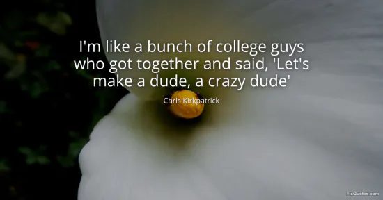 Kirkpatrick, Chris. (2026, January 16). I'm like a bunch of college guys who got together and said, 'Let's make a dude, a crazy dude'. FixQuotes. https://fixquotes.com/quotes/im-like-a-bunch-of-college-guys-who-got-together-133241/