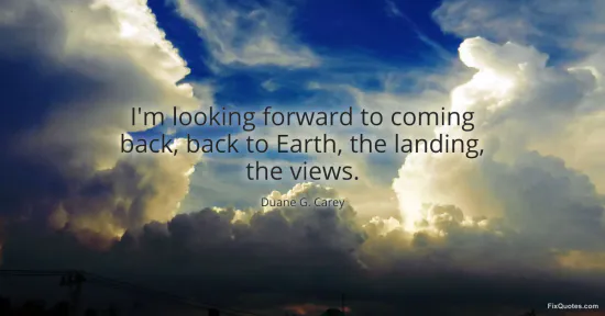 Carey’s line reads like the opposite of astronaut bravado: not “to the stars,” but “back, back to Earth.” The repetition is doing quiet work. It suggests a mind already rehearsing reentry, treating the most dangerous part of spaceflight as something you manage by narrating it into normalcy. For a profession built on checklists and controlled risk, that verbal loop feels like a stabilizer: say it twice, make it real, keep fear contained.