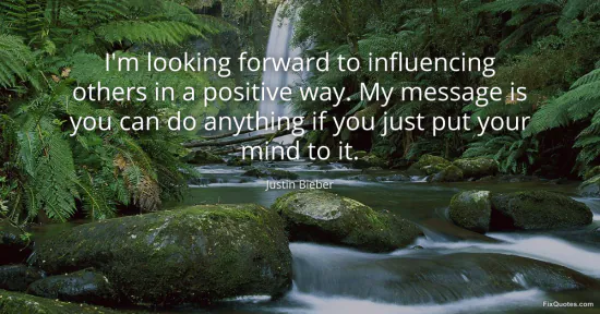 Bieber, Justin. (2026, January 16). I'm looking forward to influencing others in a positive way. My message is you can do anything if you just put your mind to it. FixQuotes. https://fixquotes.com/quotes/im-looking-forward-to-influencing-others-in-a-113719/