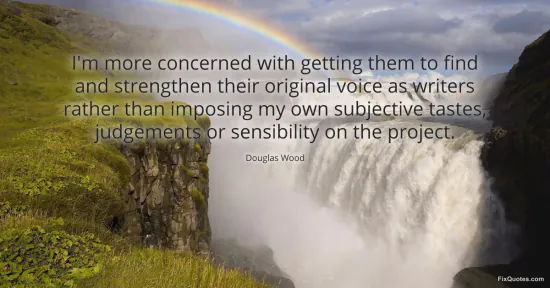 Wood, Douglas. (2026, January 15). I'm more concerned with getting them to find and strengthen their original voice as writers rather than imposing my own subjective tastes, judgements or sensibility on the project. FixQuotes. https://fixquotes.com/quotes/im-more-concerned-with-getting-them-to-find-and-148861/