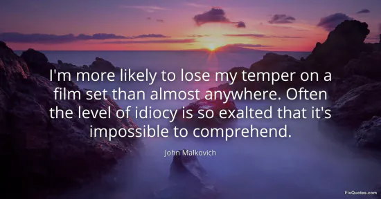 Malkovich, John. "I'm more likely to lose my temper on a film set than almost anywhere. Often the level of idiocy is so exalted that it's impossible to comprehend." FixQuotes. January 17, 2026. https://fixquotes.com/quotes/im-more-likely-to-lose-my-temper-on-a-film-set-52227/.