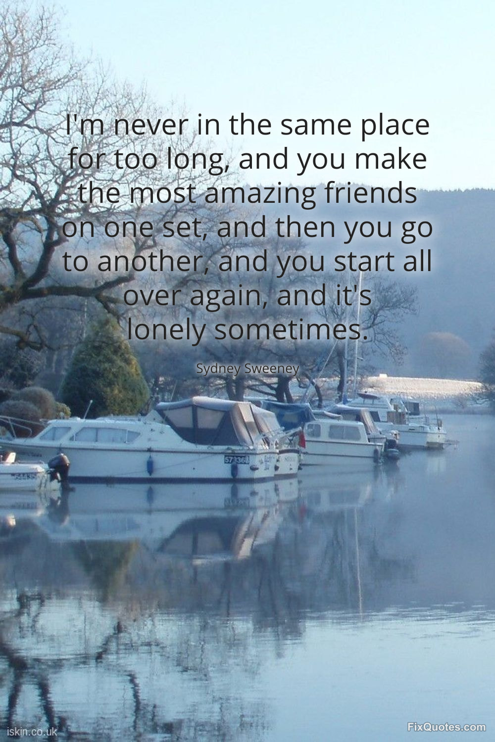 Sweeney, Sydney. (2026, January 11). I'm never in the same place for too long, and you make the most amazing friends on one set, and then you go to another, and you start all over again, and it's lonely sometimes. FixQuotes. https://fixquotes.com/quotes/im-never-in-the-same-place-for-too-long-and-you-183760/