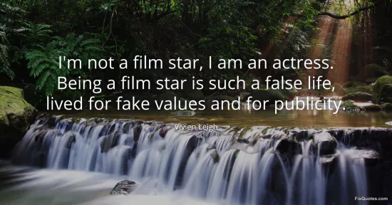 Leigh, Vivien. (2026, January 18). I'm not a film star, I am an actress. Being a film star is such a false life, lived for fake values and for publicity. FixQuotes. https://fixquotes.com/quotes/im-not-a-film-star-i-am-an-actress-being-a-film-19345/