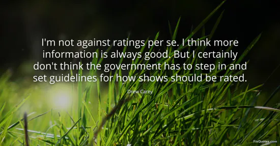 Carey, Drew. "I'm not against ratings per se. I think more information is always good. But I certainly don't think the government has to step in and set guidelines for how shows should be rated." FixQuotes. January 17, 2026. https://fixquotes.com/quotes/im-not-against-ratings-per-se-i-think-more-51506/.