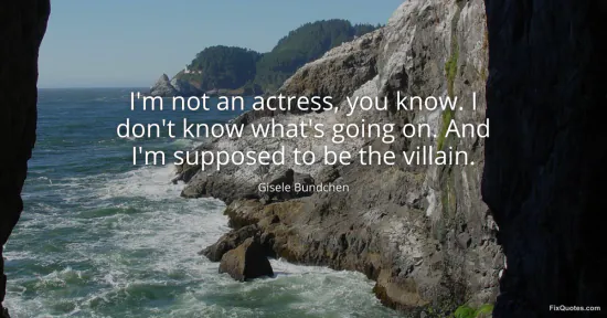 Bundchen, Gisele. "I'm not an actress, you know. I don't know what's going on. And I'm supposed to be the villain." FixQuotes. January 16, 2026. https://fixquotes.com/quotes/im-not-an-actress-you-know-i-dont-know-whats-94530/.