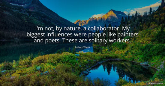 Wyatt, Robert. "I'm not, by nature, a collaborator. My biggest influences were people like painters and poets. These are solitary workers." FixQuotes. January 16, 2026. https://fixquotes.com/quotes/im-not-by-nature-a-collaborator-my-biggest-87835/.