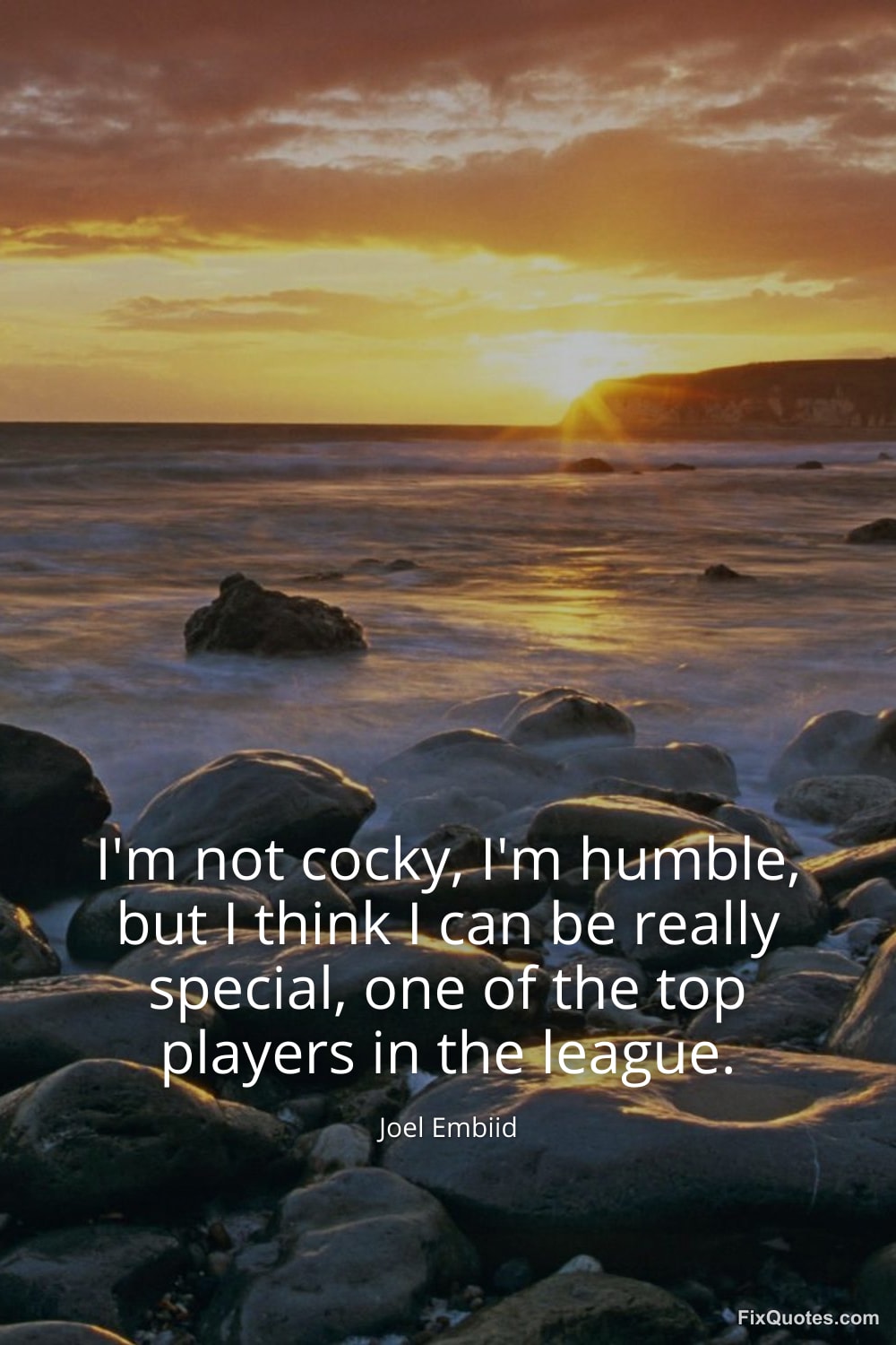 Embiid, Joel. "I'm not cocky, I'm humble, but I think I can be really special, one of the top players in the league." FixQuotes. January 30, 2026. https://fixquotes.com/quotes/im-not-cocky-im-humble-but-i-think-i-can-be-184819/.