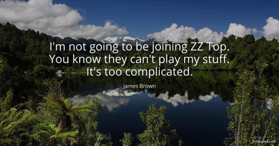 Brown, James. "I'm not going to be joining ZZ Top. You know they can't play my stuff. It's too complicated." FixQuotes. January 16, 2026. https://fixquotes.com/quotes/im-not-going-to-be-joining-zz-top-you-know-they-112613/.