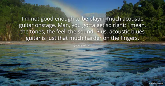 Winter, Johnny. "I'm not good enough to be playin' much acoustic guitar onstage. Man, you gotta get so right; I mean, the tones, the feel, the sound. Plus, acoustic blues guitar is just that much harder on the fingers." FixQuotes. January 15, 2026. https://fixquotes.com/quotes/im-not-good-enough-to-be-playin-much-acoustic-122261/.