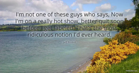 Probst, Jeff. "I'm not one of these guys who says, Now I'm on a really hot show, better quit soon before I get labeled. That's the most ridiculous notion I'd ever heard." FixQuotes. January 16, 2026. https://fixquotes.com/quotes/im-not-one-of-these-guys-who-says-now-im-on-a-135142/.