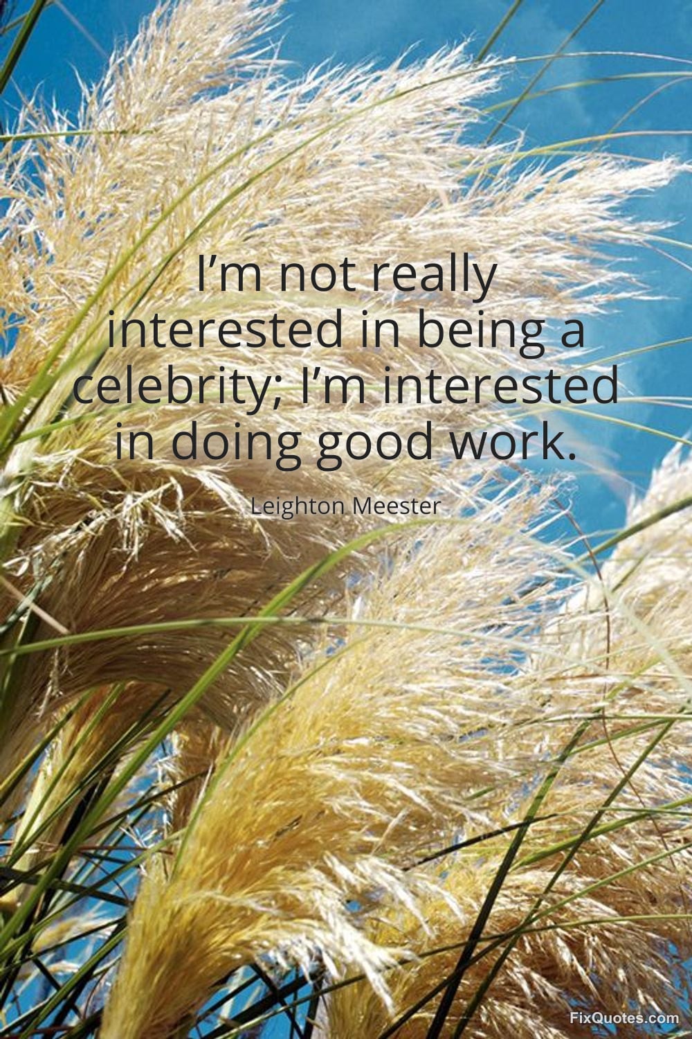 Meester, Leighton. (2026, February 14). I’m not really interested in being a celebrity; I’m interested in doing good work. FixQuotes. https://fixquotes.com/quotes/im-not-really-interested-in-being-a-celebrity-im-185334/