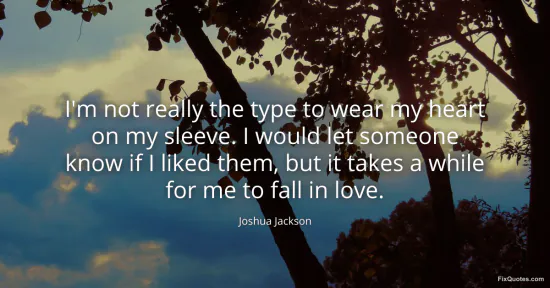 Jackson, Joshua. "I'm not really the type to wear my heart on my sleeve. I would let someone know if I liked them, but it takes a while for me to fall in love." FixQuotes. January 16, 2026. https://fixquotes.com/quotes/im-not-really-the-type-to-wear-my-heart-on-my-107214/.