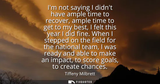 "I'm not saying I didn't have ample time to recover, ample time to get to my best, I felt this year I did fine. When I stepped on the field for the national team, I was ready and able to make an impact, to score goals, to create chances"