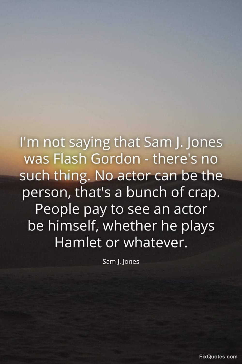 Jones, Sam J. (2026, January 16). I'm not saying that Sam J. Jones was Flash Gordon - there's no such thing. No actor can be the person, that's a bunch of crap. People pay to see an actor be himself, whether he plays Hamlet or whatever. FixQuotes. https://fixquotes.com/quotes/im-not-saying-that-sam-j-jones-was-flash-gordon-128309/