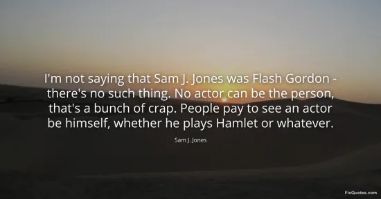 Jones, Sam J. "I'm not saying that Sam J. Jones was Flash Gordon - there's no such thing. No actor can be the person, that's a bunch of crap. People pay to see an actor be himself, whether he plays Hamlet or whatever." FixQuotes. January 16, 2026. https://fixquotes.com/quotes/im-not-saying-that-sam-j-jones-was-flash-gordon-128309/.