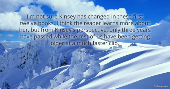 Grafton, Sue. (2026, January 16). I'm not sure Kinsey has changed in these first twelve books. I think the reader learns more about her, but from Kinsey's perspective, only three years have passed while the rest of us have been getting older at a much faster clip. FixQuotes. https://fixquotes.com/quotes/im-not-sure-kinsey-has-changed-in-these-first-97970/