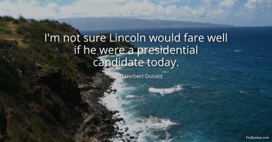 Donald, David Herbert. "I'm not sure Lincoln would fare well if he were a presidential candidate today." FixQuotes. January 17, 2026. https://fixquotes.com/quotes/im-not-sure-lincoln-would-fare-well-if-he-were-a-53796/.