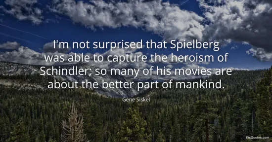 "I'm not surprised that Spielberg was able to capture the heroism of Schindler; so many of his movies are about the better part of mankind"
