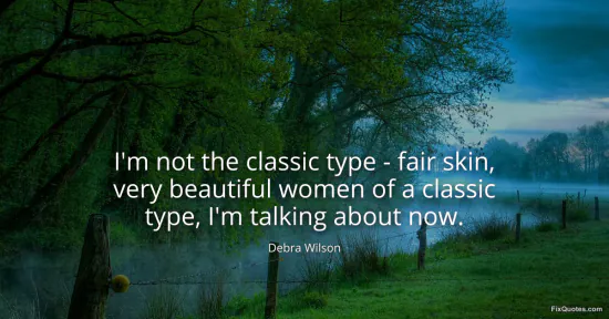 Wilson, Debra. "I'm not the classic type - fair skin, very beautiful women of a classic type, I'm talking about now." FixQuotes. January 16, 2026. https://fixquotes.com/quotes/im-not-the-classic-type-fair-skin-very-133469/.