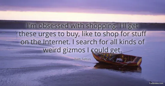 Felton, Tom. (2026, January 18). I'm obsessed with shopping. I'll get these urges to buy, like to shop for stuff on the Internet. I search for all kinds of weird gizmos I could get. FixQuotes. https://fixquotes.com/quotes/im-obsessed-with-shopping-ill-get-these-urges-to-18124/