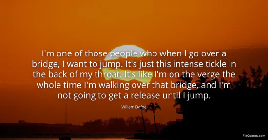 Dafoe, Willem. (2026, January 15). I'm one of those people who when I go over a bridge, I want to jump. It's just this intense tickle in the back of my throat. It's like I'm on the verge the whole time I'm walking over that bridge, and I'm not going to get a release until I jump. FixQuotes. https://fixquotes.com/quotes/im-one-of-those-people-who-when-i-go-over-a-160236/