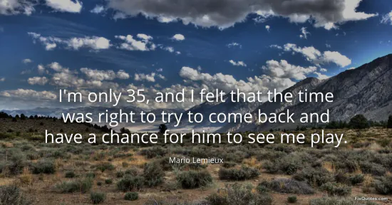 Lemieux, Mario. (2026, January 18). I'm only 35, and I felt that the time was right to try to come back and have a chance for him to see me play. FixQuotes. https://fixquotes.com/quotes/im-only-35-and-i-felt-that-the-time-was-right-to-10794/