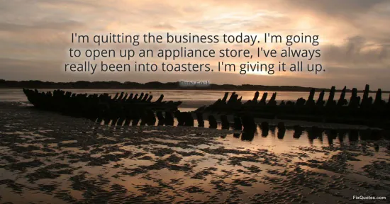 "I'm quitting the business today. I'm going to open up an appliance store, I've always really been into toasters. I'm giving it all up." FixQuotes, 17 Jan. 2026, https://fixquotes.com/quotes/im-quitting-the-business-today-im-going-to-open-43259/. Accessed 12 Feb. 2026.