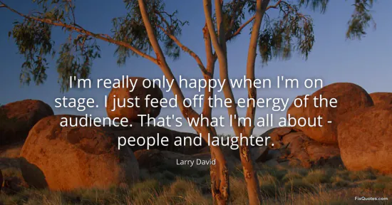 David, Larry. "I'm really only happy when I'm on stage. I just feed off the energy of the audience. That's what I'm all about - people and laughter." FixQuotes. January 18, 2026. https://fixquotes.com/quotes/im-really-only-happy-when-im-on-stage-i-just-feed-20138/.