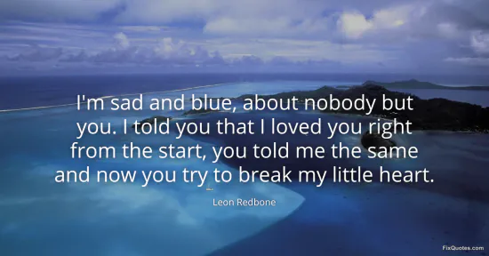 Redbone, Leon. "I'm sad and blue, about nobody but you. I told you that I loved you right from the start, you told me the same and now you try to break my little heart." FixQuotes. January 16, 2026. https://fixquotes.com/quotes/im-sad-and-blue-about-nobody-but-you-i-told-you-116989/.