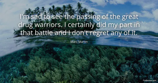 Maron, Marc. "I'm sad to see the passing of the great drug warriors. I certainly did my part in that battle and I don't regret any of it." FixQuotes. January 16, 2026. https://fixquotes.com/quotes/im-sad-to-see-the-passing-of-the-great-drug-105022/.