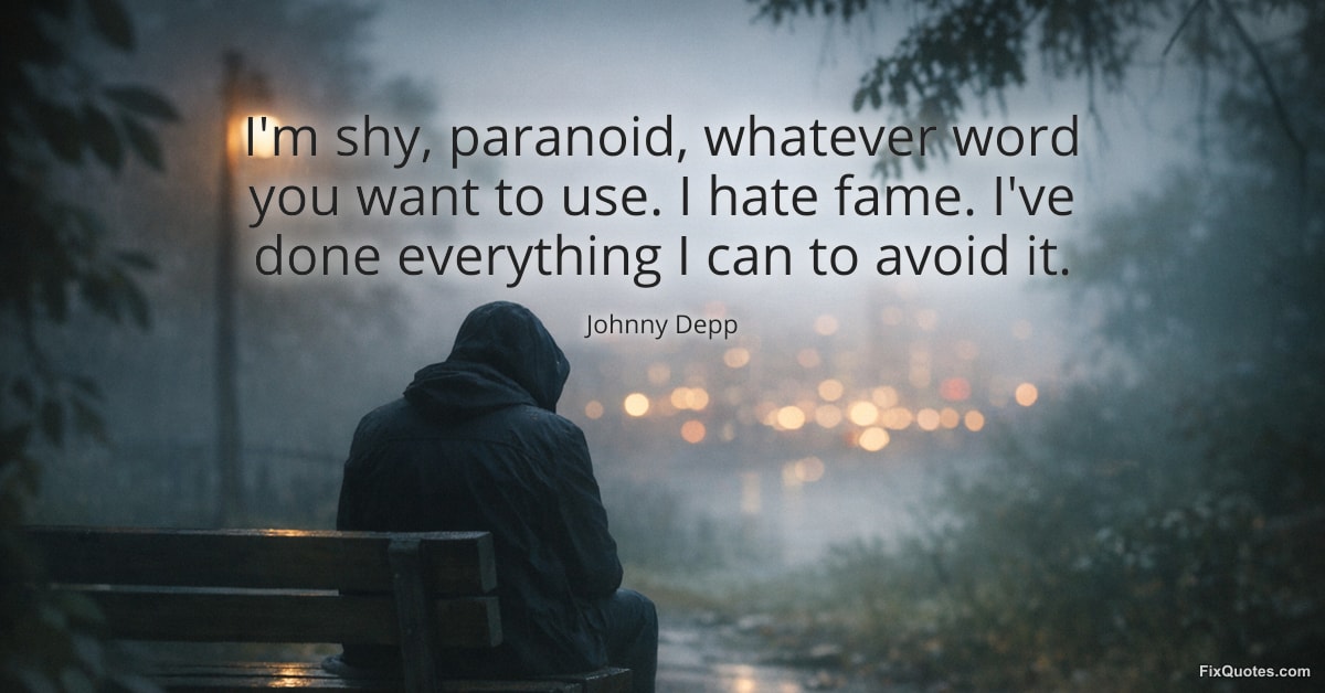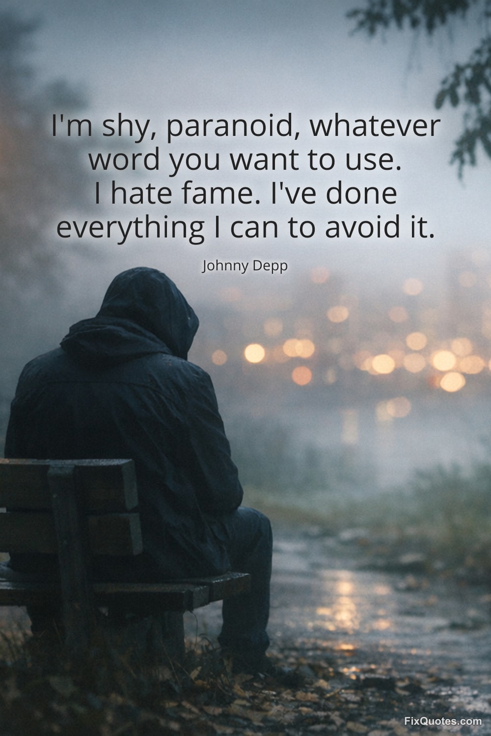 Depp, Johnny. "I'm shy, paranoid, whatever word you want to use. I hate fame. I've done everything I can to avoid it." FixQuotes. February 2, 2026. https://fixquotes.com/quotes/im-shy-paranoid-whatever-word-you-want-to-use-i-14741/.