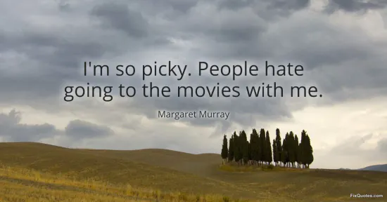Murray, Margaret. (2026, January 17). I'm so picky. People hate going to the movies with me. FixQuotes. https://fixquotes.com/quotes/im-so-picky-people-hate-going-to-the-movies-with-79539/