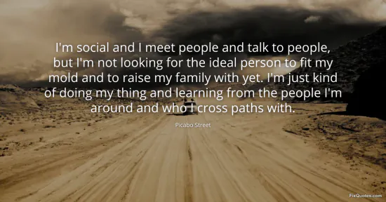 Street, Picabo. (2026, February 16). I'm social and I meet people and talk to people, but I'm not looking for the ideal person to fit my mold and to raise my family with yet. I'm just kind of doing my thing and learning from the people I'm around and who I cross paths with. FixQuotes. https://fixquotes.com/quotes/im-social-and-i-meet-people-and-talk-to-people-159106/