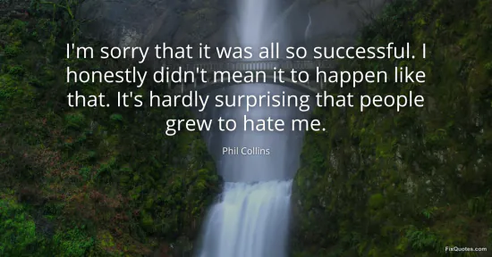 Collins, Phil. "I'm sorry that it was all so successful. I honestly didn't mean it to happen like that. It's hardly surprising that people grew to hate me." FixQuotes. January 16, 2026. https://fixquotes.com/quotes/im-sorry-that-it-was-all-so-successful-i-honestly-101173/.