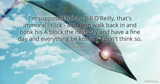 Mackris, Andrea. (2026, January 17). I'm supposed to say, Bill O'Reilly, that's immoral - click - and then walk back in and book his A block the next day and have a fine day and everything be kosher? I don't think so. FixQuotes. https://fixquotes.com/quotes/im-supposed-to-say-bill-oreilly-thats-immoral-37285/