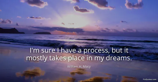 Macy, William H. "I'm sure I have a process, but it mostly takes place in my dreams." FixQuotes. January 15, 2026. https://fixquotes.com/quotes/im-sure-i-have-a-process-but-it-mostly-takes-166419/.