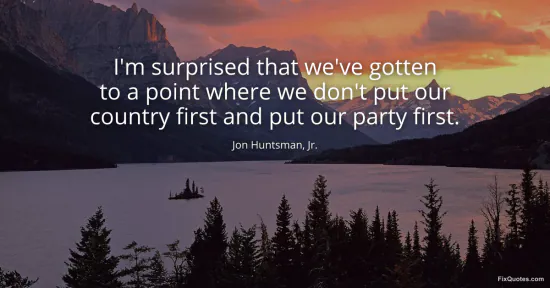 Jr., Jon Huntsman,. "I'm surprised that we've gotten to a point where we don't put our country first and put our party first." FixQuotes. January 17, 2026. https://fixquotes.com/quotes/im-surprised-that-weve-gotten-to-a-point-where-we-59093/.