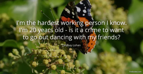 Lohan, Lindsay. "I'm the hardest working person I know. I'm 20 years old - is it a crime to want to go out dancing with my friends?" FixQuotes. January 15, 2026. https://fixquotes.com/quotes/im-the-hardest-working-person-i-know-im-20-years-153761/.