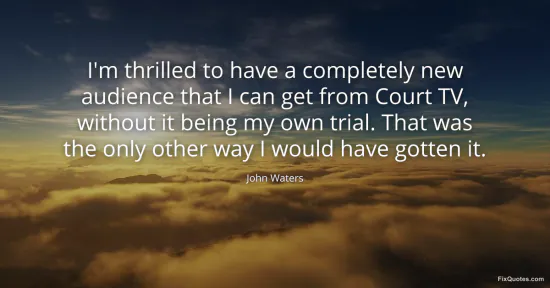 Waters, John. "I'm thrilled to have a completely new audience that I can get from Court TV, without it being my own trial. That was the only other way I would have gotten it." FixQuotes. January 15, 2026. https://fixquotes.com/quotes/im-thrilled-to-have-a-completely-new-audience-165251/.