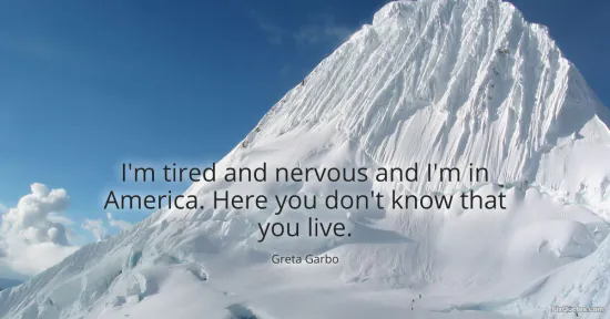 Garbo, Greta. "I'm tired and nervous and I'm in America. Here you don't know that you live." FixQuotes. January 15, 2026. https://fixquotes.com/quotes/im-tired-and-nervous-and-im-in-america-here-you-4450/.