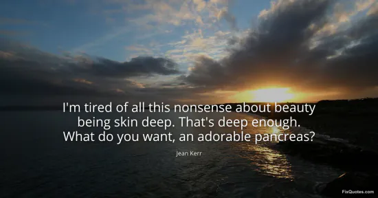 Kerr, Jean. (2026, January 18). I'm tired of all this nonsense about beauty being skin deep. That's deep enough. What do you want, an adorable pancreas? FixQuotes. https://fixquotes.com/quotes/im-tired-of-all-this-nonsense-about-beauty-being-6756/