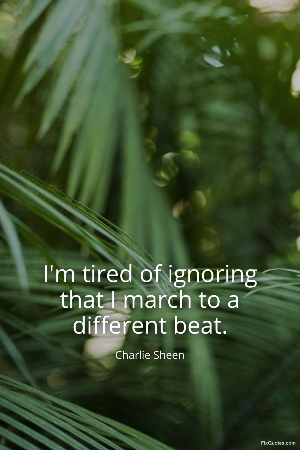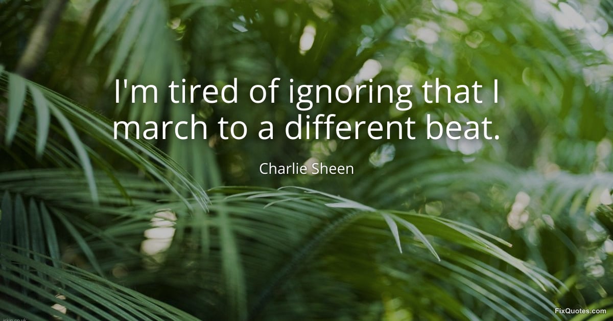 Sheen, Charlie. (2026, January 17). I'm tired of ignoring that I march to a different beat. FixQuotes. https://fixquotes.com/quotes/im-tired-of-ignoring-that-i-march-to-a-different-35435/