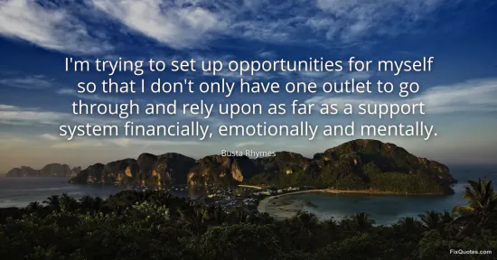 Rhymes, Busta. (2026, January 17). I'm trying to set up opportunities for myself so that I don't only have one outlet to go through and rely upon as far as a support system financially, emotionally and mentally. FixQuotes. https://fixquotes.com/quotes/im-trying-to-set-up-opportunities-for-myself-so-41479/